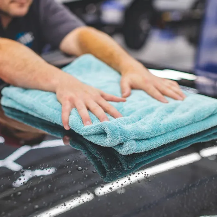 Liquid8r היא מגבת ייבוש מהירה ויעילה במיוחד, שנועדה למי שמחפש איזון מושלם בין כוח ספיגה, קלילות ומהירות עבודה. היא מיוצרת באריגת Twist Loop מתקדמת ובצפיפות של כ־1100GSM, עם תערובת מיקרופייבר איכותית של 70% פוליאסטר ו־30% פוליאמיד, המאפשרת איסוף מים מהיר מאוד ותחושת החלקה חלקה ובטוחה על הצבע. בזכות המבנה הייחודי שלה, Liquid8r “שואבת” מים מהמשטח במקום לגרור אותם, מה שמפחית משמעותית את זמן הייבוש ואת הצורך במעברים חוזרים. משתמשים רבים מציינים שמגבת אחת מספיקה לייבוש רכב שלם, תוך שמירה על תחושת עבודה קלה ולא מעייפת. היא מתאימה במיוחד לרכבים פרטיים, רכבי יוקרה ושטיפות תכופות, ומספקת תוצאה נקייה, אחידה וללא סימני מים. התחושה על הצבע רכה ונעימה, והמגבת מחליקה בקלות גם על משטחים רגישים או מצופים בציפוי קרמי.